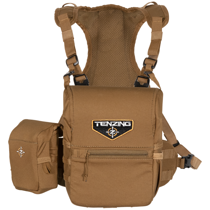The Bino Harness is made from 300D Honeycomb Poly Oxford fabric ensuring top-tier durability. It features an enclosed magnetic closure for secure access batwing construction for easy attachment of accessories and a rangefinder pocket with a tether. Elastic straps provide flexibility to stretch over extra layers without adjustments.