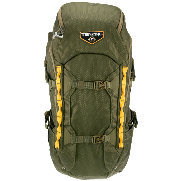 The Tenzing Daypack 2300 in Olive is designed for the serious outdoor enthusiast, featuring a durable 300-denier ripstop Honeycomb Poly Oxford outer shell that is burr-proof. Inside, the backpack offers ample storage with a 2300-cubic inch main compartment, three open-top grab pockets, and five zippered pockets, ensuring all your essential gear is well-organized. A fold-down gear organizer allows for quick, single-handed access. Additional features include three exterior zippered pockets, two expandable side pockets with adjustable compression straps, and a customizable Daisy Chain system. It's also compatible with hydration bladders, making it a versatile choice for any adventure.