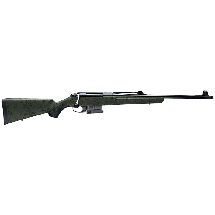 The Tikka T3x Drover is the ideal firearm for managing varmints, hogs, or deer on a farm or ranch. Equipped with battue open sights featuring Truglo optic fibers, this rifle ensures quick target acquisition in any lighting condition. The fluted, threaded barrel and fluted bolt enhance performance and reliability, while the Roughtech finish provides a firm grip in all weather conditions. The adjustable trigger allows for a customized shooting experience, and an additional attachment point on the stock's forend increases stability for those crucial shots.