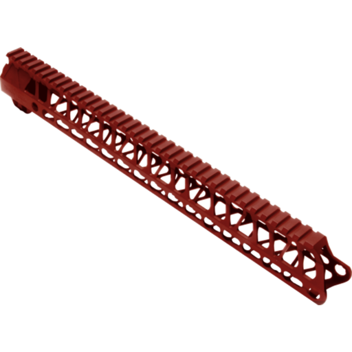 Upgrade your AR-15 setup with the Timber Creek 15" Enforcer Handguard in striking red anodized aluminum. Designed for optimal performance, this handguard offers a slim and lightweight profile while maintaining exceptional modular flexibility. Built from durable billet aluminum, it boasts a full-length mil-spec Picatinny rail and M-LOK compatibility for versatile accessory mounting. Perfectly crafted for AR-15 uppers and requiring a low-profile gas block, it combines style, strength, and functionality. Please note, the barrel nut is not included.