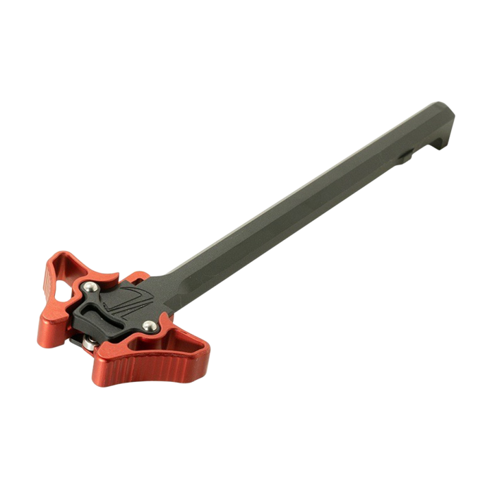 Upgrade your AR platform with a Timber Creek Mini Charging Handle in a striking red anodized finish. Precision-engineered with patent-pending roller bearing technology, it offers seamless ambidextrous operation for both left- and right-handed users. Its sleek, refined design is slightly wider than a standard mil-spec handle, providing improved functionality without added bulk. CNC machined from durable aircraft-grade billet aluminum, this lightweight and reliable charging handle delivers smooth performance and long-lasting strength.