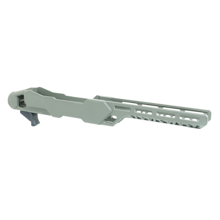 The Timber Creek Enforcer Rifle Chassis in OD Green is a revolutionary upgrade for your Ruger 10/22. Constructed from aircraft-grade aluminum, this chassis offers a perfect blend of durability and lightweight efficiency. Its skeletonized design not only reduces weight but also enhances the precision of your shooting experience. Compatible with MSR buffer tubes, it allows for customization with various Precision Rifle Stocks. This innovative chassis combines functionality with the signature style Timber Creek Outdoors is renowned for, making it an essential addition for any shooting enthusiast looking to enhance their rimfire rifle.