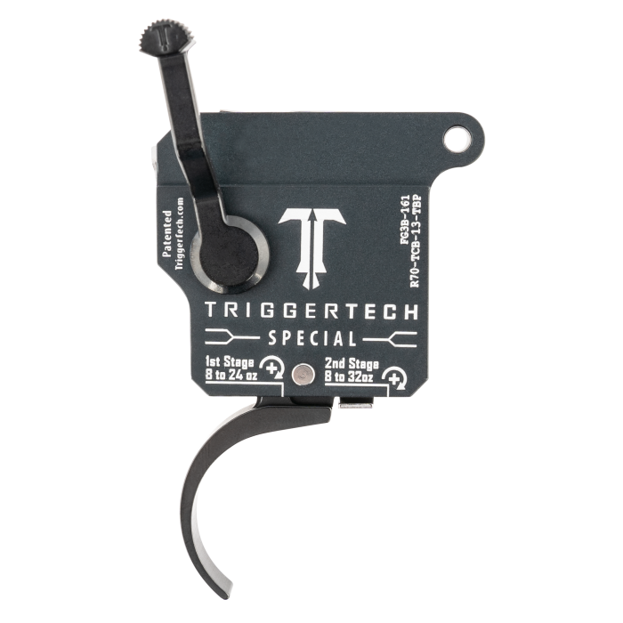 The TriggerTech Remington 700 Pro Two-Stage Curved Trigger offers unparalleled precision for right-handed shooters. Crafted from durable 7075-T6 aluminum, this trigger is designed for those who appreciate a slight movement before hitting the wall. With its matte gray finish accented by black parts, it not only performs exceptionally but looks sleek as well. The special model features TriggerTech's innovative four-point safety system, ensuring maximum protection without compromising on performance. Experience the unmatched zero-creep break and tactile pull weight adjustments on both stages, setting a new standard in the world of precision shooting.