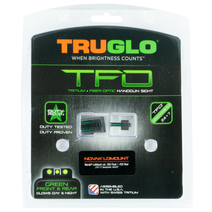 TruGlo TFO 1911 Officer Pistol Sight Set Green Tritium Fiber Optic
