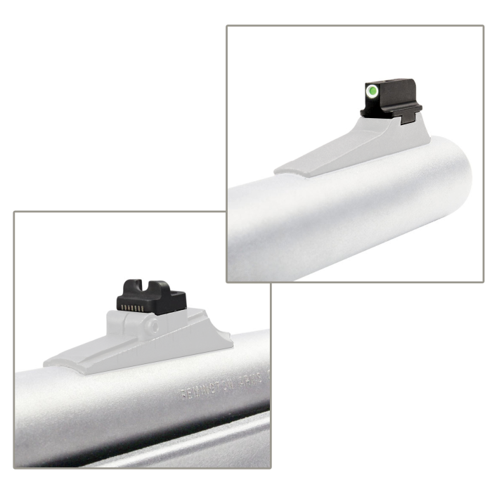 The TFX Pro Sights elevate your shooting experience with advanced technology designed for optimal performance. Crafted specifically for Remington shotguns, this front and rear sight set incorporates Swiss tritium for unmatched brightness and visibility in any lighting condition. The front sight combines tritium and fiber optic technology, delivering a vivid green aiming point with a white outline for enhanced target acquisition. The rear sight features a U-notch design, offering a clear and precise sight picture. Constructed from CNC machined steel with a durable black nitride fortress finish, these sights ensure lasting reliability and ruggedness. The dovetail base configuration guarantees a secure and seamless fit on your firearm.