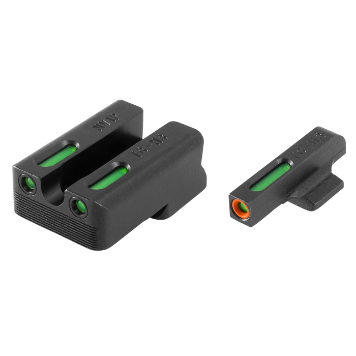 Enhance your 1911 handgun with this high-performance sight set, designed to deliver precision and clarity in all lighting conditions. Featuring a square front and U-notch rear, these sights are crafted from premium tritium and fiber optic materials, ensuring exceptional visibility and rapid target acquisition. The CNC machined steel frame boasts a durable black nitride fortress finish, providing both strength and resilience. The front sight is highlighted with a vibrant orange outline, complemented by the green tritium and fiber optic combination, while the rear sight uses the same green tritium and fiber optic for consistent sight alignment. Tailored for 1911 models with Novak .270 front and .450 rear slots, this sight set offers an upgrade that blends functionality with superior craftsmanship.