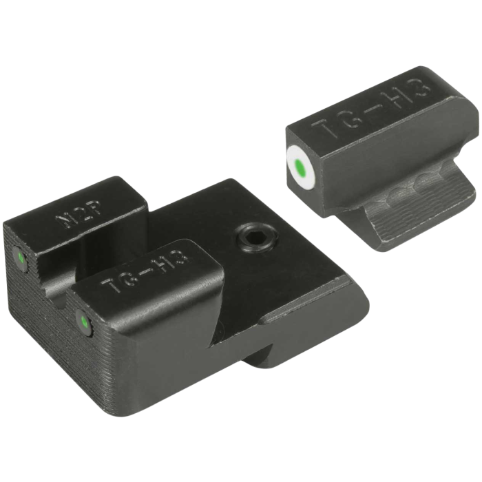 The Truglo Tritium Pro Green Tritium Sights are expertly designed for the 1911 Officer model, offering exceptional visibility and performance. These sights are crafted from durable steel, featuring a black nitride fortress finish that adds a sleek touch to your firearm. With tritium-infused front and rear sights, they provide a reliable glow in low-light conditions without the need for batteries or external light sources. The square front with a FOCUSLOCK ring ensures rapid target acquisition, while the U-notch rear enhances precision. Compatible with most standard holsters, these sights fit seamlessly on 1911 models with a .270 front and .500 rear Novak LoMount cut, specifically tailored for the 3-inch Officer and 4.25-inch versions.