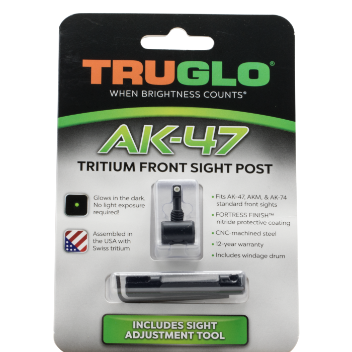 This Tritium Front Sight is an essential upgrade for your AK-47 or AKM, providing enhanced visibility in low-light conditions. Crafted from durable CNC machined steel, the black frame houses a green and white tritium insert that glows brightly, ensuring you never lose sight of your target. The sight offers both windage and elevation adjustments, allowing for precise alignment tailored to your shooting needs. Its easy installation, complete with an adjustment tool, makes it a practical and efficient enhancement for your firearm. Assembled in the U.S.A. with top-quality Swiss tritium, this front sight guarantees reliability and performance.