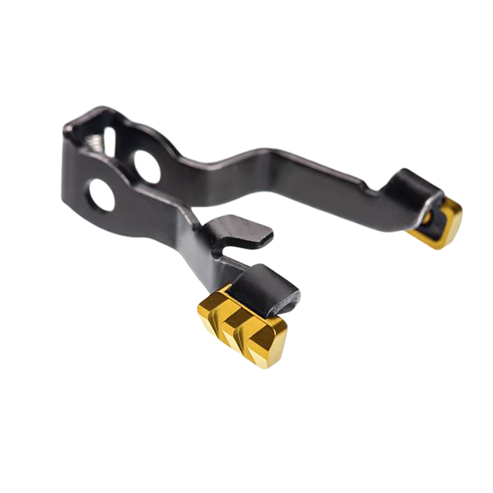 Upgrade your Glock Gen5 9mm with a precision-engineered CNC machined extended slide release. Crafted from durable 6061 aluminum and finished with a hard coat anodization, this innovative drop-in replacement combines strength and style. As the first-ever CNC machined Glock extended slide release, it delivers smoother operation, faster reloads, and superior reliability. Designed for a perfect fit, it’s the ideal enhancement for your pistol. Available in a bold gold finish for a standout look.
