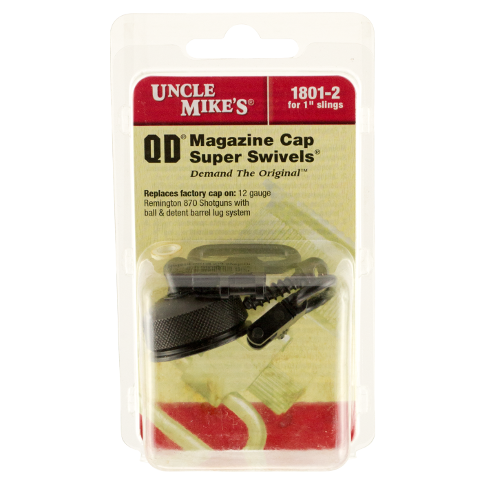 Enhance your Remington 870 Youth shotgun with the Uncle Mike's Steel Mag Cap Swivel Set. Crafted from durable steel with a sleek blued finish, this set offers a quick detach style for convenient use. Designed specifically for 12-gauge Remington 870 and 870 Youth models, it includes a replacement magazine cap with a swivel base, a wood screw buttstock swivel base, and two Super Swivels. With a 1-inch loop size, this set ensures a secure and reliable attachment, making it a superior choice for any shotgun enthusiast looking to upgrade their firearm's versatility and functionality.