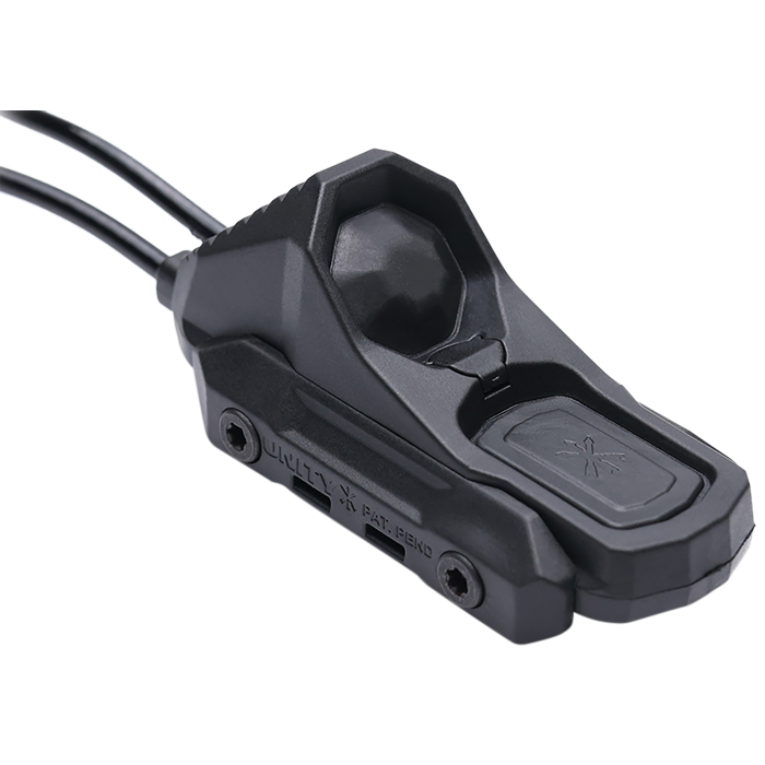 The Unity Tactical Axon Sync Black Remote Switch is the ultimate solution for managing weapon-mounted lights and lasers. Designed with direct input from professional users, this switch offers unparalleled control and precision. Crafted from durable polymer and weighing just 1.7 oz, it mounts seamlessly to M1913 Rail or MLOK systems. The innovative design features distinct tactile buttons to prevent confusion under stress, allowing users to operate lights and lasers effortlessly. The angled button facilitates simultaneous light and laser activation, while the flat button provides laser control with a momentary feature and a double-click constant-on option. This versatile switch is perfect for high-stakes environments, ensuring reliable performance every time.