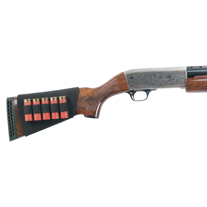 Elevate your shooting experience with the Uncle Mike's Buttstock Shell Holder, designed to securely hold five shotgun shells. Crafted from durable black neoprene, this shell holder features sewn-on elastic loops that ensure a snug fit over the firearm's buttstock. Its smooth finish and non-slip surface provide both comfort and control, making it an essential accessory for any shotgun enthusiast. Perfectly tailored for model 49-3 shotguns, this holder adds convenience and efficiency to your outdoor adventures.