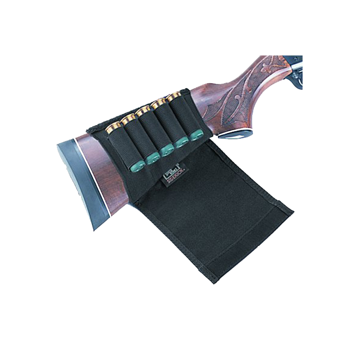 The Uncle Mikes Buttstock Shell Holder is an essential accessory for shotgun enthusiasts. Designed to securely hold up to five shells, this holder is crafted from durable Cordura nylon, ensuring longevity and reliability. Its sleek black finish and smooth texture make it a stylish addition to your firearm. The elastic sleeve effortlessly slips over the shotgun stock, providing a snug fit, while sewn-on elastic loops keep your ammunition in place. A flap with a hook-and-loop closure adds an extra layer of security, folding up neatly from the bottom. Ideal for quick access and efficient storage, this shell holder combines functionality and convenience for any shooting activity.