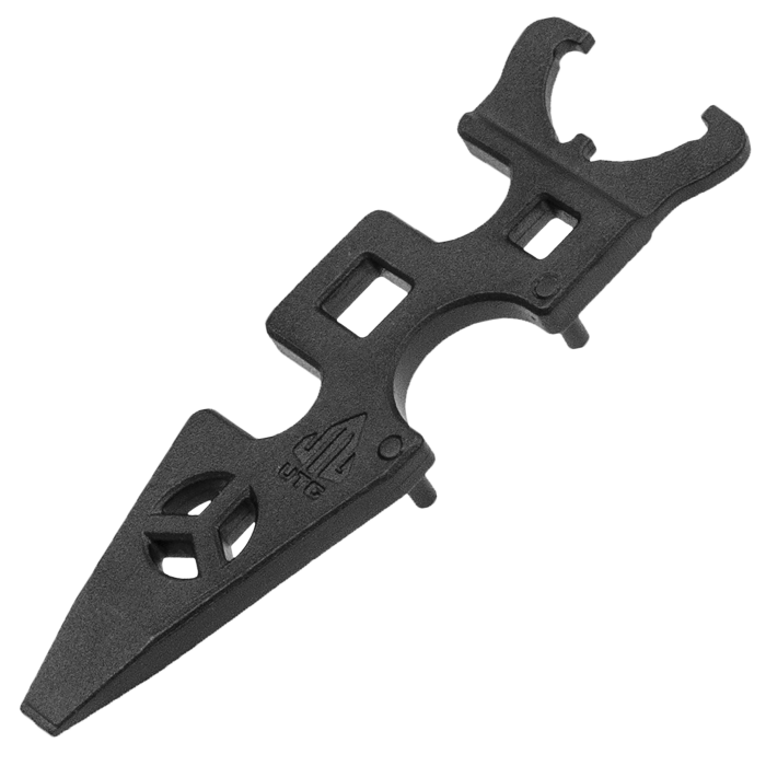 The Leapers Steel Mini Armorer's Wrench is an essential tool for firearm enthusiasts and professionals alike, offering a versatile range of functions in a compact design. Crafted from robust steel with a wear-resistant phosphate finish, this wrench ensures long-lasting durability. It features flat head screwdriver capabilities, torque interfaces of 12 and 38, and wrenches for 34 and 58. Additionally, it includes specialized wrenches for the USGI barrel nut, castle nut, and A1 3-prong flash hider, making it a comprehensive solution for various maintenance tasks. Weighing just 7.80 oz, this multi-functional tool is both lightweight and efficient, perfect for any toolkit.
