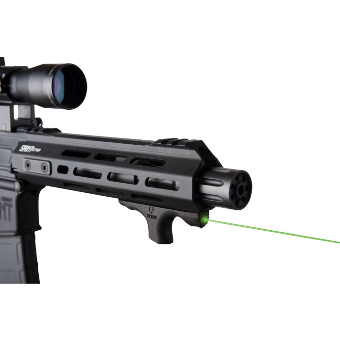 Elevate your shooting precision with the Viridian HS1 Hand Stop featuring an integrated green laser, specifically designed for AR platforms. Crafted from durable black polymer, this innovative accessory is the first of its kind, combining a hand stop and laser sighting device. It mounts easily using the MLOK system and offers dual pressure activation buttons for seamless operation with various grip styles, including thumb-over-bore and C-clamp. With adjustable windage and elevation, the HS1 ensures accurate targeting, making it an ideal choice for tactical firearm enthusiasts seeking enhanced performance and reliability.