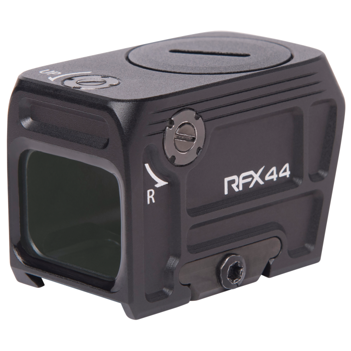 The Viridian Reflex Sight RFX44 offers a sleek black finish and a precise 5 MOA green dot, perfect for enhancing shooting accuracy. Weighing only 1.59 ounces, this lightweight optic seamlessly integrates with Glock MOS platforms, utilizing the Aimpoint Acro footprint for secure mounting. With a compact design featuring a front lens of 16 mm and overall dimensions of 2.50 x 3.10 x 4.30 inches, this sight is engineered for durability and precision.