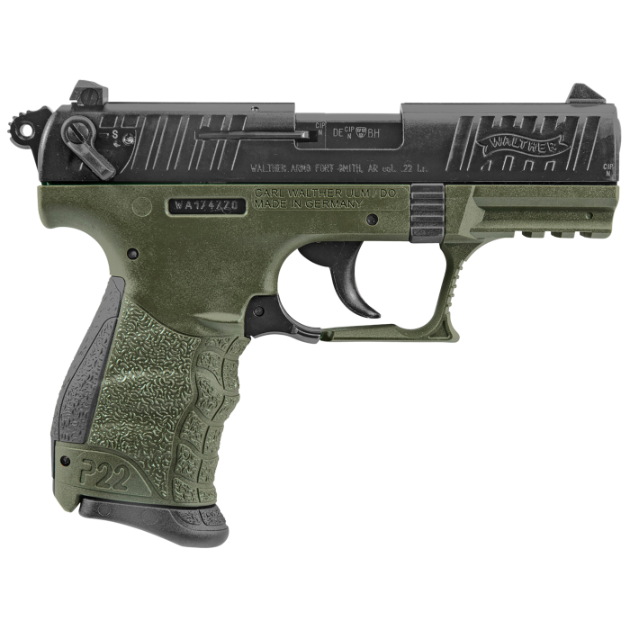 Consistent reliability, timeless style, features pushed this p22 series to become the absolute standard.Featuring interchangeable backstraps; ambidextrous magazine release and slide safety; picatinny rail; windage adjustable rear sight; da/sa trigger; permanent threaded/capped barrel that cannot be removed.*ca compliant.