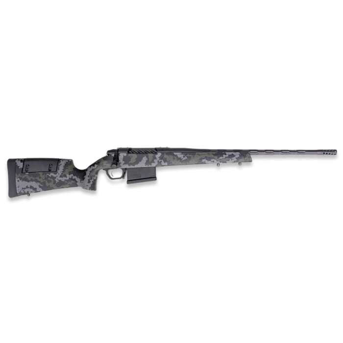 The Weatherby 307 in .300 Win is a meticulously crafted bolt-action rifle designed for precision and reliability. Featuring a 24-inch fluted and threaded barrel, it provides enhanced accuracy and reduced recoil with the Accubrake system. This rifle offers a 5+1 capacity and is equipped with an M16 style extractor for dependable performance. The adjustable TriggerTech trigger ensures a crisp, customizable pull. Its steel receiver and lightweight stock, finished in green, include an adjustable cheek piece and length of pull for tailored comfort. With its dual front swivel studs, the 307 accommodates multiple accessories, making it an excellent choice for both hunters and shooting enthusiasts.
