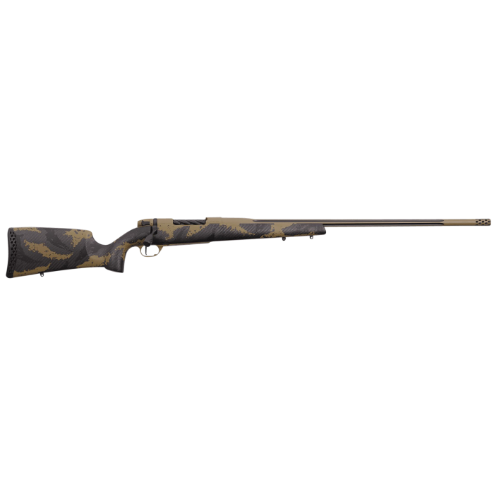 This bolt-action rifle is chambered in 6.5-300 Wthby Mag and features a 26" fluted barrel with an Accubrake ST muzzle. The rifle has a capacity of 3+1 and is equipped with a TriggerTech Field trigger. The overall length is 48", and it has a twist rate of 1:8". The receiver is made of steel, and the stock is finished in digital camouflage. Designed for right-hand use, this firearm falls within the weight range of 7 lbs to 7.99 lbs. The Weatherby Mark V Apex is the ultimate choice for those seeking precision and reliability in a lightweight hunting rifle.