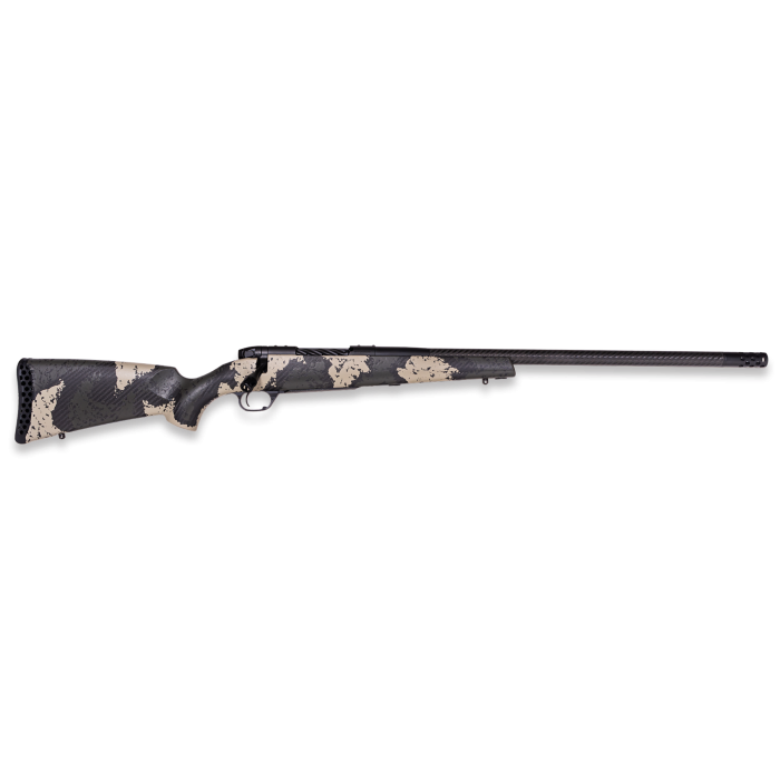 The Weatherby Mark V Backcountry Guide in 257 Wthby Mag is a precision-crafted rifle designed for the serious hunter. Weighing in at a nimble 6.40 lbs, it offers both power and portability. Its 24-inch fluted threaded barrel, paired with the titanium Accubrake ST, ensures reduced recoil and enhanced accuracy. The Blacktooth stock, handpainted for a unique finish, integrates Spartan Precision adapters for ultralight accessory compatibility. The adjustable TriggerTech trigger provides a crisp, customizable pull, while the deep spiral-fluted bolt enhances reliability with a smoother cycle. Ideal for right-handed shooters, this rifle combines cutting-edge technology with classic hunting tradition.