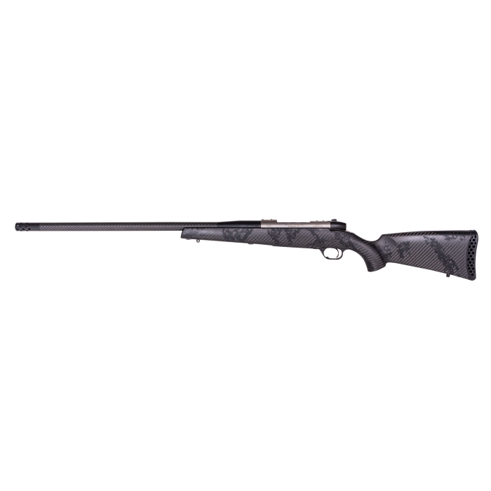 The Weatherby Mark V 6.5 Creedmoor is a precision-engineered bolt-action rifle designed for discerning shooters. With a sleek 22-inch fluted and threaded barrel, this rifle offers exceptional accuracy and versatility. The Peak 44 Blacktooth stock, featuring a unique digital camouflage finish, is hand-painted for a distinctive look. Weighing just 5.20 lbs, its titanium action ensures a remarkable strength-to-weight ratio, making it ideal for backcountry adventures. The rifle is equipped with a two-position safety and an adjustable TriggerTech trigger for enhanced control. Its Accubrake ST muzzle brake reduces recoil, ensuring a comfortable shooting experience. With a capacity of 4+1 rounds, this rifle seamlessly integrates modern design with superior performance.