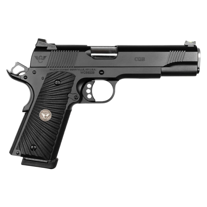 The Wilson Combat CQB Full-Size Pistol is the ultimate expression of a modernized 1911 design, combining a timeless aesthetic with cutting-edge performance. Chambered in .45 ACP, it features a robust 5" barrel and an 8+1 capacity, making it a powerful and reliable option for defense, competition, or everyday carry. Its Bullet Proof Thumb Safety and durable G10 Starburst grips provide exceptional control and confidence in any situation. Renowned for its craftsmanship and precision, the CQB stands out with its unrivaled reliability and accuracy, making it the gold standard in the Wilson Combat lineup.