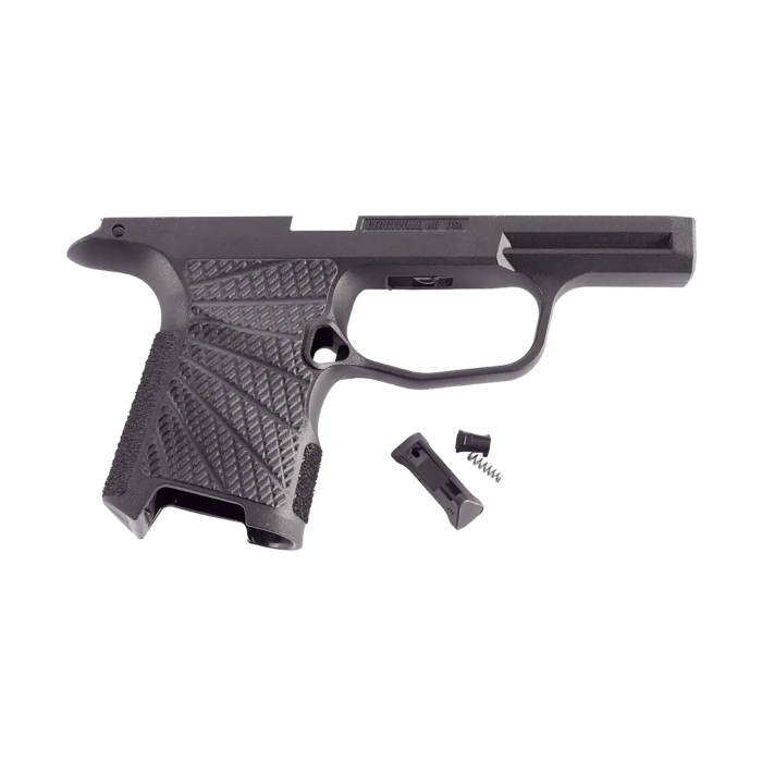 Enhance your shooting experience with the Wilson Combat Black Polymer Grip designed for the SIG P365. Engineered to provide a superior grasp and improved recoil control, this grip module is crafted from durable polymer with a sleek black finish. Tailored for optimal performance, it ensures a secure and comfortable hold, making it an essential upgrade for any SIG P365 owner. Please note, this grip module is not compatible with California versions of the SIG SAUER P365.