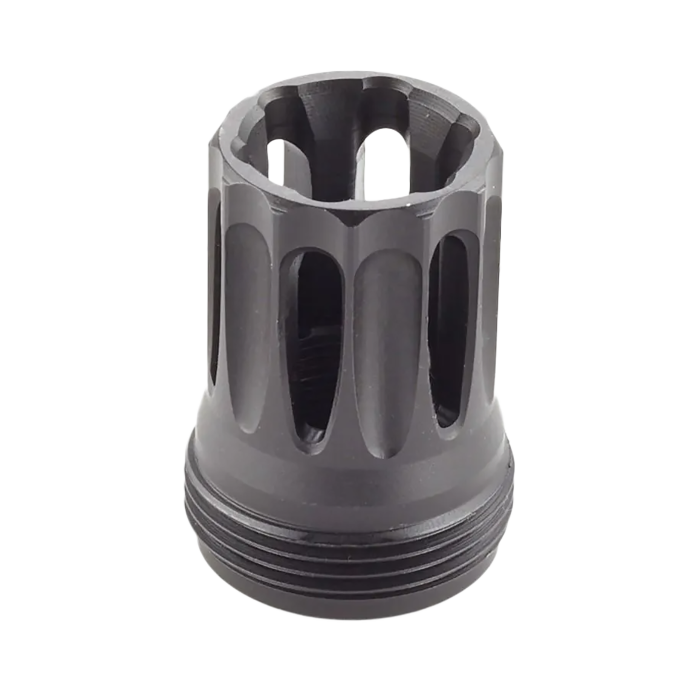 Meet the ultimate hybrid solution for firearm enthusiasts. The Wilson Combat Quell K-Mount is meticulously crafted as a versatile flash hider when used solo or as a quick attach/detach interface for the renowned Wilson Combat Quell suppressor. Designed with precision threading of 1/2x28 and finished in durable nitride black, this accessory combines rugged performance with sleek aesthetics. Tailored for dependability and adaptability, it's a must-have upgrade for shooting precision and efficiency.