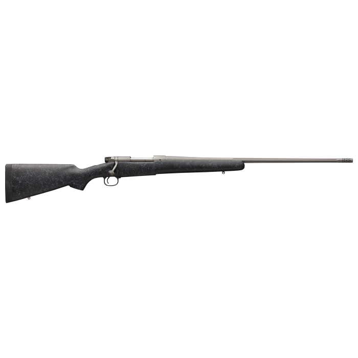 The Winchester Model 70 has been the benchmark for bolt-action rifles since 1936, setting the standard for precision and reliability. Featuring the renowned 3-position safety, it allows for easy operation with the thumb of the firing hand, lifting the firing pin away from the sear for enhanced safety. The forged steel receiver, crafted from a solid block of steel, boasts a flat bottom profile for greater bedding surface area. This receiver is bedded with a two-part epoxy at both the front and rear, ensuring stability within the stock during firing.