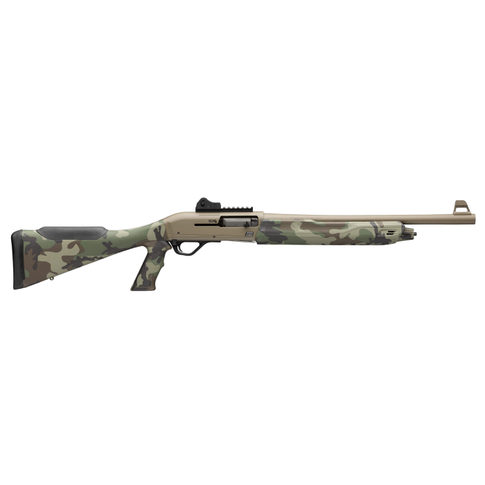 The Winchester SX4 is a versatile 12-gauge shotgun designed for those who demand reliability and performance. With a semi-automatic action and an 18.50-inch steel barrel, it provides a smooth shooting experience. The natural camouflage finish enhances its stealth, making it ideal for outdoor adventures. Weighing just over 6 pounds, it is lightweight and easy to handle, perfect for long days in the field. The shotgun features a fixed stock with a pistol grip for improved control and comfort. Equipped with a crossbolt safety, it ensures user safety during operation. The SX4 accommodates 3-inch shells and has a capacity for four 2 3/4-inch shells. Its Invector-Plus Flush choke system offers versatility with Full, Modified, and Improved Cylinder chokes included. The drilled and tapped receiver with a Picatinny rail allows for easy mounting of optics, while the LPA front and ghost ring rear sights provide excellent target acquisition. Whether for hunting or sport shooting, this shotgun meets the needs of any enthusiast.
