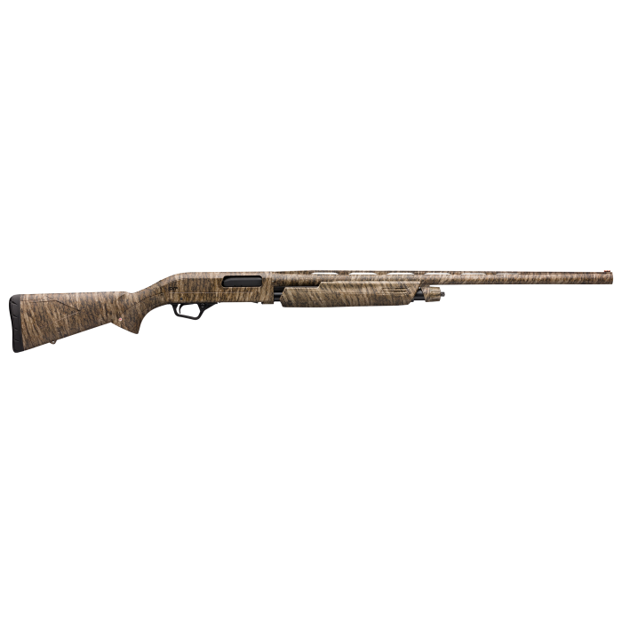 Pick up the winchester super x pump (sxp) shotgun and experience the light weight, centered balance and instant pointability firsthand.The super x design provides you with the fastest follow-up shots.No other pump offers the feeling of an inertia-assisted slide-action that can deliver three shots in a half second.Whether its super-speed clays or fast-flushing upland game, keep up with shootings fastest action with the super x pump, the perfect choice for pump shotgun lovers.This waterfowl hunter model features a mossy oak bottomland camo finish.