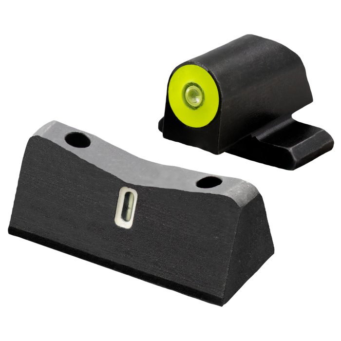 The DXT2 Night Sight Set is crafted specifically for the Springfield XD-S handgun, offering a significant upgrade for your everyday carry needs. This sight set features both front and rear components made from durable CNC machined steel, ensuring longevity and reliability. The tritium-enhanced front sight is equipped with a photoluminescent Glow Dot, designed to capture ambient light and improve visibility in low-light conditions. Its yellow outline stands out in dim environments, while the convex design maximizes light absorption. The rear sight, featuring a green tritium with a white outline, forms a shallow V shape that allows for a wide field of view, providing a clear and intuitive sight picture. The DXT2 sights are engineered to be large and easy to see, accommodating various vision challenges and enhancing performance in high-stress scenarios. Inspired by the express sight concept used in big game hunting, these sights deliver a quick and accurate flash sight picture, crucial in defensive situations when every moment counts.