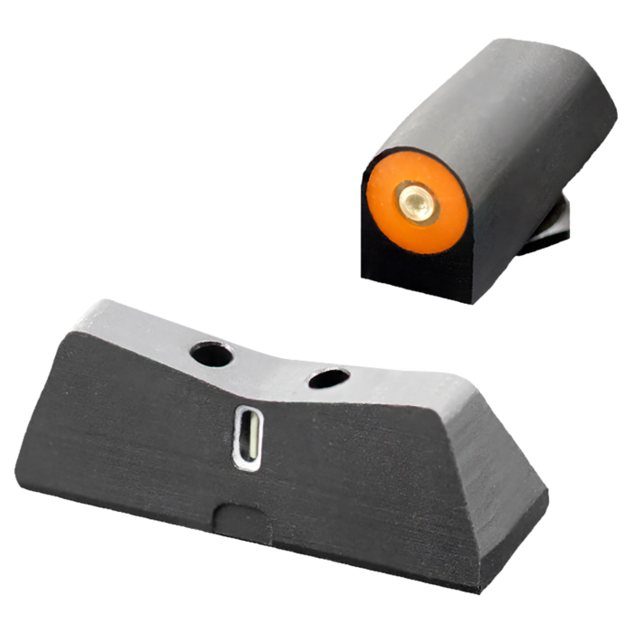 The XS Sights DXT2 Night Sights for Glock provide an enhanced aiming experience for your everyday carry pistol. Crafted from CNC machined steel, this front and rear sight set fits Glock models 42, 43, 43X, and 48. The front sight features a tritium insert with an orange outline, while the rear sight boasts a green tritium bar with a white outline, ensuring clear visibility. The Glow Dot technology on the front sight absorbs ambient light, making it glow brightly in low-light conditions. This design is particularly beneficial for those with aging or deteriorating vision, as the large, highly visible sight picture reduces confusion during high-stress situations. The shallow V rear sight offers a low-profile, wide field of view, allowing for quick and accurate target acquisition. Inspired by express sights used in big game hunting, the DXT2 Night Sights deliver a reliable and intuitive aiming solution when every second counts.