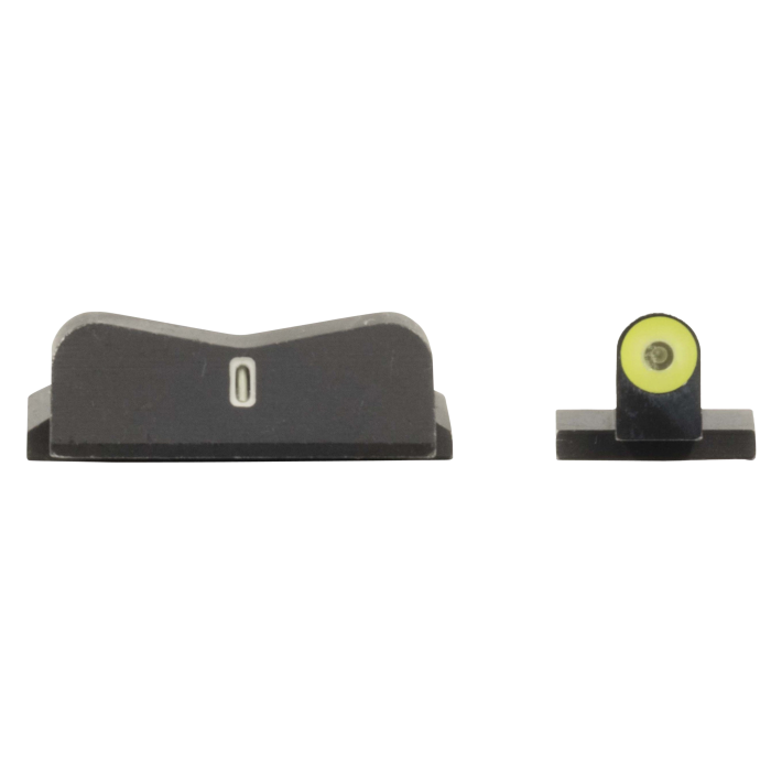 The XS Sights DXT2 Big Dot Night Sights are meticulously crafted for the Smith & Wesson M&P handgun, offering a significant upgrade for your everyday carry firearm. These sights feature a large, highly visible front dot with a proprietary photoluminescent Glow Dot that absorbs ambient light, ensuring optimal visibility in low-light conditions. The combination of a green tritium dot with a yellow outline on the front and a green tritium dot with a white outline on the rear enhances target acquisition and prevents sight confusion during high-stress situations. Made from durable CNC machined steel, this front and rear night sight set provides a wide field of view thanks to its shallow V rear design. Whether in daylight or darkness, the DXT2 sights deliver a clear and bright sight picture, inspired by the express sight concept for swift and accurate target engagement.