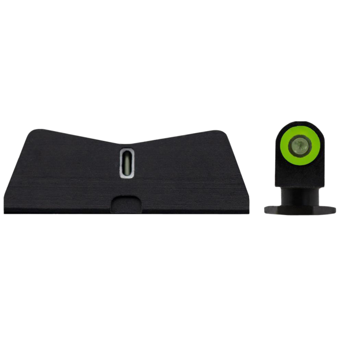 The XS Sights DXT2 Night Sights for the Glock 26 Gen1-5 are crafted to enhance your everyday carry experience with superior visibility and precision. Engineered with CNC machined steel, these sights employ black tritium to ensure robust performance in any scenario. The front sight features a photoluminescent Glow Dot, which absorbs ambient light to provide a bright, clear view in low-light conditions. Its convex design increases light absorption, making it particularly effective for those with aging or deteriorating vision. The front sight is highlighted in green with a green outline, while the rear sight is designed with a white outline for quick alignment. The shallow V shape of the rear sight offers a wide field of view, ensuring you can quickly acquire your target. The innovative dot-the-i sight picture, with a tritium dot at the front and a tritium bar at the rear, minimizes confusion during high-stress situations, making these sights ideal for defensive use. Inspired by the express sight concept used in African big game hunting, these sights deliver a combat-accurate flash sight picture when every second counts.
