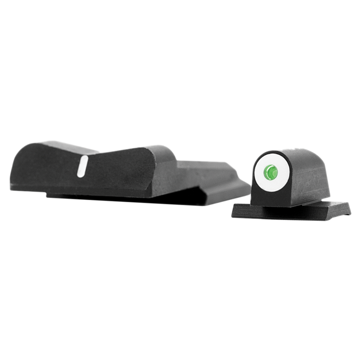 The DXW Big Dot Night Sights are expertly crafted for Smith & Wesson M&P handguns, offering a superior sighting solution for everyday carry. Built with CNC machined steel, these sights ensure durability and precision. The front sight features a vibrant tritium dot encased in a reflective white outline, enhancing visibility in low-light conditions. Complementing this is the shallow V rear sight with a distinctive white stripe, designed to prevent confusion during high-stress scenarios. These sights are especially beneficial for those with aging or deteriorating vision, providing a clear and bright sight picture both day and night. Inspired by African big game hunting sights, the DXW sights deliver a combat-accurate flash sight picture when it matters most.