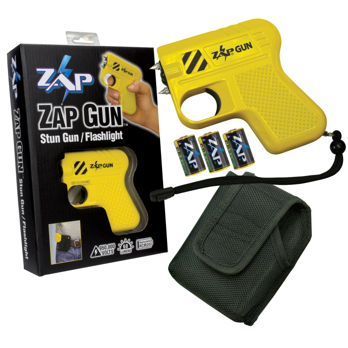 Introducing a revolutionary self-defense tool, the Zap Gun Stun Gun Flashlight in vibrant yellow. Designed for those who prioritize safety without compromising on style, this stun gun offers a compact and ergonomic design with a soft rubber coating that ensures a nonslip molded grip for seamless control. Uniquely crafted for maximum efficiency, it combines the power of a 950,000-volt stun capability with the practicality of an ultra-bright flashlight, making it a versatile companion in any situation. The flashlight boasts a 60-lumen LED light with up to three hours of runtime, perfect for illuminating dark paths or disorienting an attacker. Its impressive 20,000-hour bulb life ensures reliability whenever needed, while the battery life extends up to two years, minimizing the need for frequent replacements. The intimidating ZAP sound itself can serve as a formidable deterrent. For added security, an on/off safety switch prevents accidental discharge. Convenience is key, with the inclusion of a wrist strap, three CR2 batteries, and a holster featuring a belt clip for easy carrying. Ideal for close-contact situations, this portable stun gun is the perfect blend of power and practicality, ensuring peace of mind for anyone who carries it.